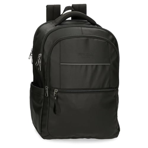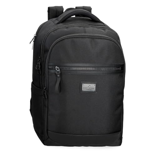 Pepe Jeans Blackmore Sac à dos pour ordinateur portable 15,6 pouces Noir 31 x 44 x 15 cm Polyester avec détails en cuir synthétique 20,46 l by Joumma Bags, Noir, Talla única, Sac à dos pour