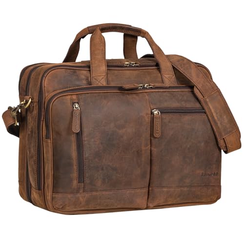 STILORD "Arnold Spacieux Sac Bandoulière Cuir Sacoche Ordinateur 17 Pouces à 19 Vintage Sac d'Affaires Hommes Grand Cartable Professeur Femme Cuir Véritable Couleur:zamora - marron