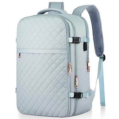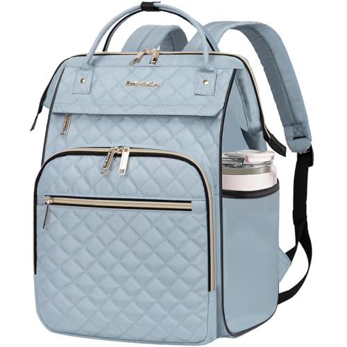 EMPSIGN Sac à dos pour ordinateur portable de 17 pouces pour femme, sac à dos pour travail, affaires, voyage, université, sac à dos imperméable matelassé décontracté avec port USB, bleu clair