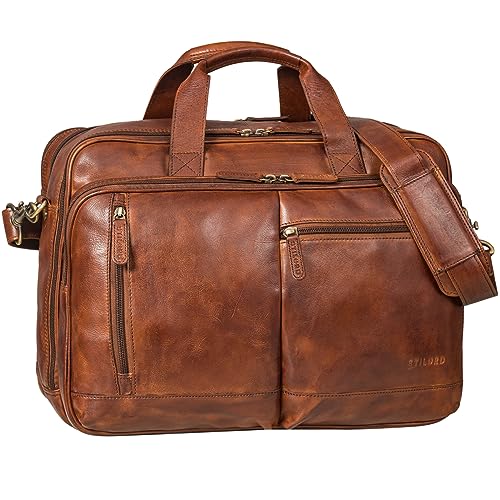 STILORD "Arnold Spacieux Sac Bandoulière Cuir Sacoche Ordinateur 17 Pouces à 19 Vintage Sac d'Affaires Hommes Grand Cartable Professeur Femme Cuir Véritable Couleur:brandy - cognac