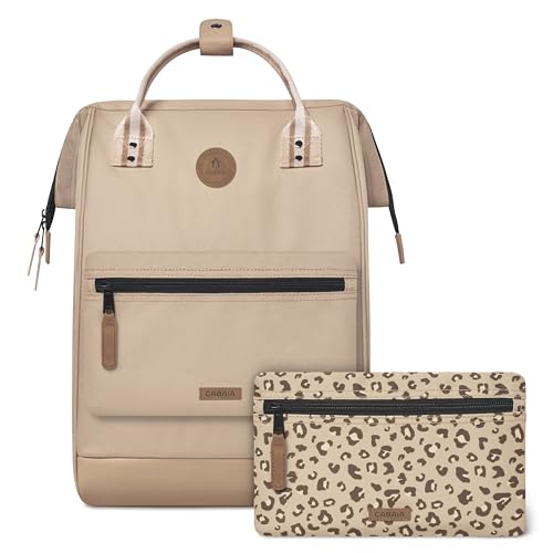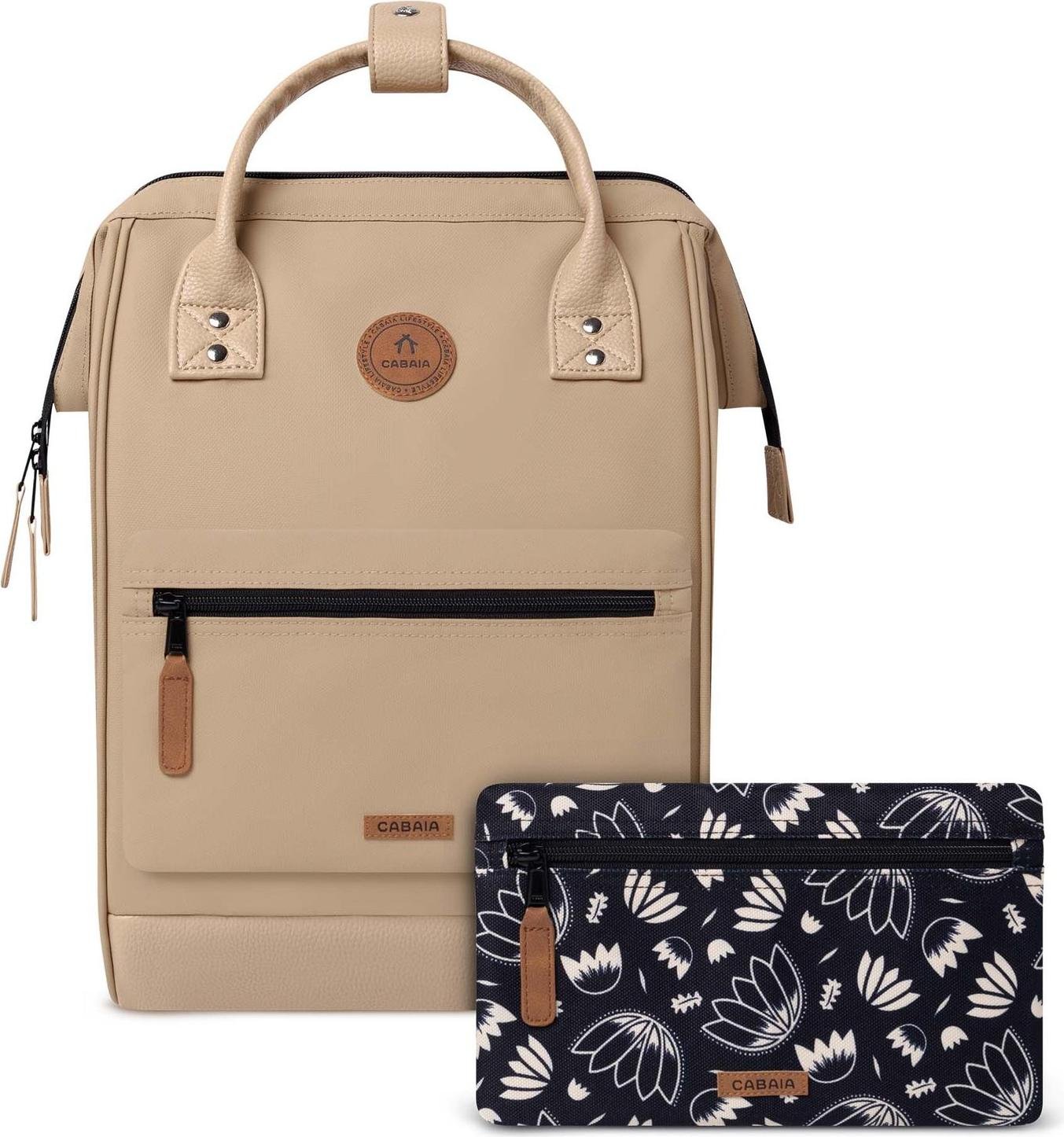 CABAIA - Sac à Dos Adventurer Arcachon - Medium 18L - Déperlant - Compartiment Ordinateur Portable 13-2 Poches - Certifié Vegan - Sac Voyage, Affaires, École pour Homme et Femme - Beige
