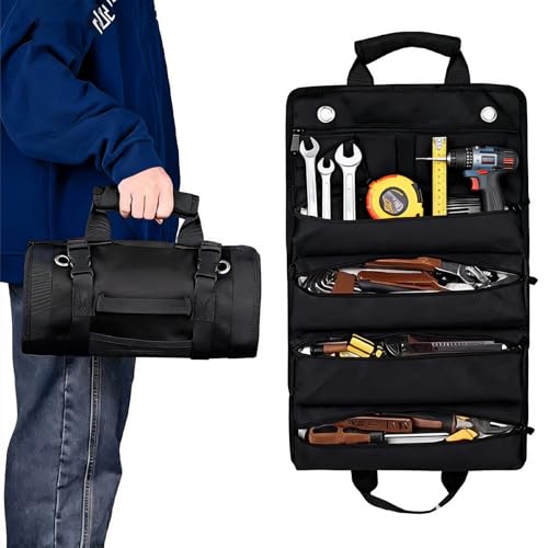 Sac à Outils Roll-Up, Sacoche Outils Compacte, Sacs outils Noir en Oxford, sac Outillage Portable, sac A outils Pratique pour Bricoleur, Trousse à outil