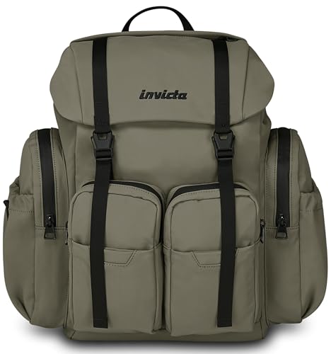 Invicta Sac à dos de bureau Freeact Camo, vert, icône sac à dos avec poche pour PC 15,6", poche porte-bouteille et poche avec organisateur, voyage, travail, pour homme et femme, vert militaire, Taglia