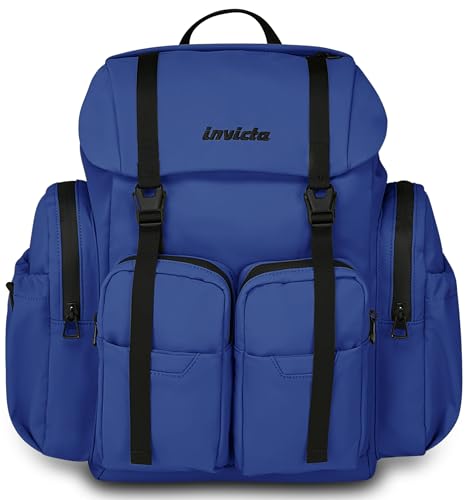 Invicta Sac à Dos de Travail Invict-Act Fold, Bleu, monocompartiment avec Poche PC 15,6", Poche Gourde et Fond renforcé, Grand Sac à Dos 32 L pour Bureau et université, pour Homme et Femme, Bleu,