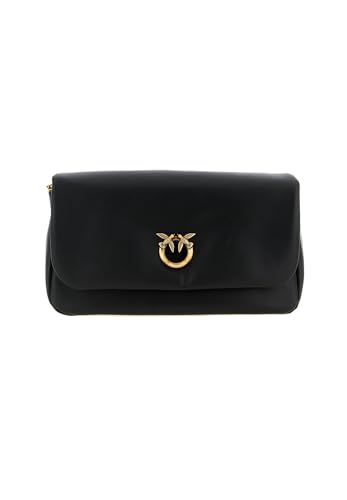Pinko Sac à Bandoulière en Cuir Noir avec Fermeture à Rabat Bandoulière Réglable et Amovible, Galvanica Or Antique 27,5 x 13 x 2 cm
