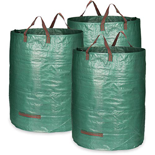 COM-FOUR® 3x Sacs à déchets de Jardin XL - Sac de Jardin Pliable avec poignées de Transport - Poubelle Pliante indéchirable pour Feuilles, déchets Verts et déchets de Jardin (300 l - 3 pièces)