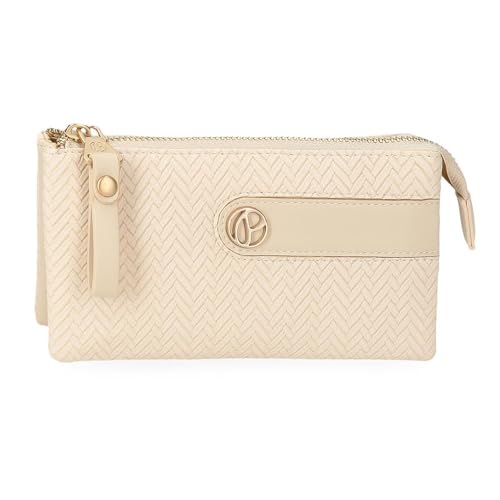 Pepe Jeans Sprig Sac à Dos décontracté pour Femme, Sac à Main, Porte-Monnaie et Portefeuilles, système RFID, Cuir synthétique de Joumma Bags, Beige, Talla única, Porte-Monnaie Triple