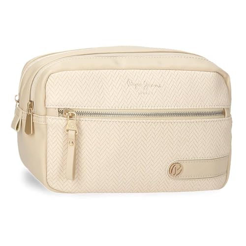 Pepe Jeans Sprig Sac à Dos décontracté pour Femme, Sac à Main, Porte-Monnaie et Portefeuilles, système RFID, Cuir synthétique de Joumma Bags, Beige, Talla única, Trousse de Toilette