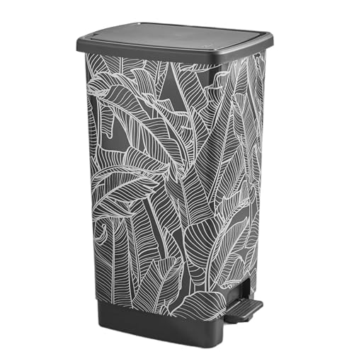 SUNDIS Cover Bin, poubelle à pédale 40 L, rectangulaire, en plastique recyclé, style jungle, avec anses pour accrocher et cacher le sac, pour cuisine, bureau, buanderie, atelier, garage