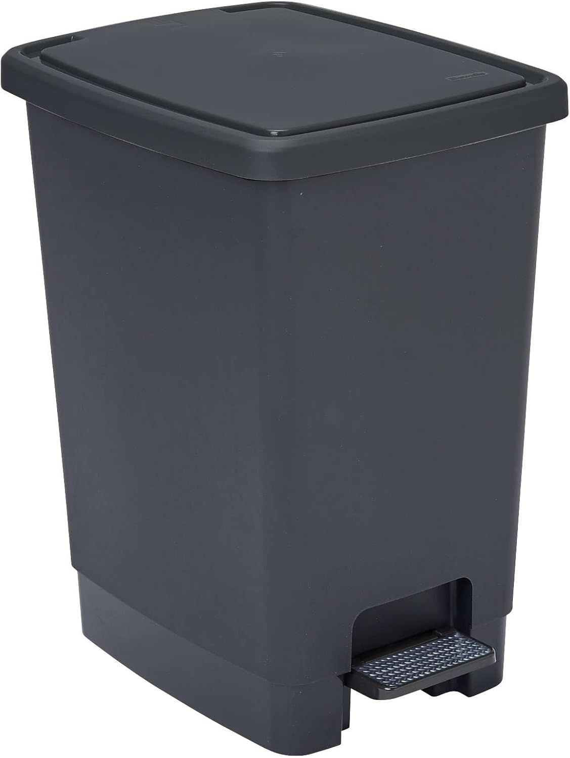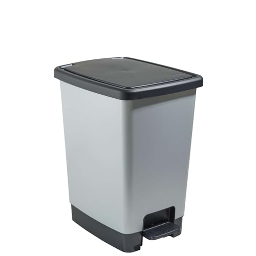 JEXNOVASHOP-SUNDIS Flat Bin, poubelle à pédale 30 L, rectangulaire, en plastique recyclé, avec anses pour accrocher et cacher le sac, noir et anthracite, pour cuisine, bureau, buanderie, atelier, sal