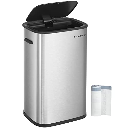 SONGMICS Poubelle de Cuisine Automatique 50L, avec Couvercle à Fermeture en Douceur, Anneau de Maintien du Sac, Poubelle en Acier Inoxydable, 15 Sacs Poubelles Inclus, Argent LTB610E50