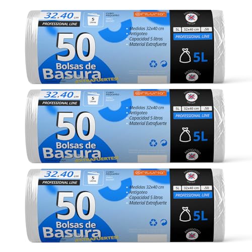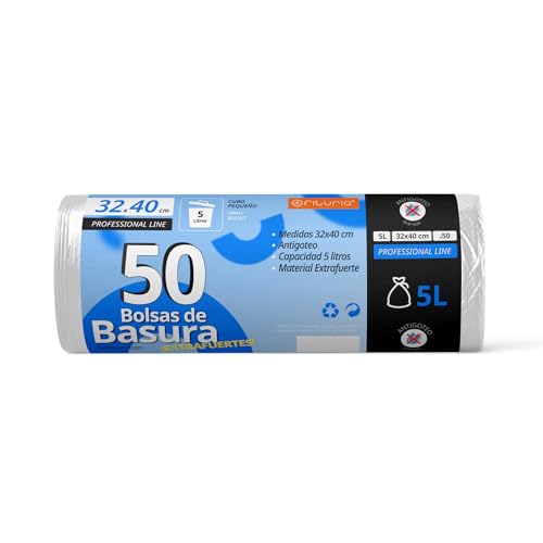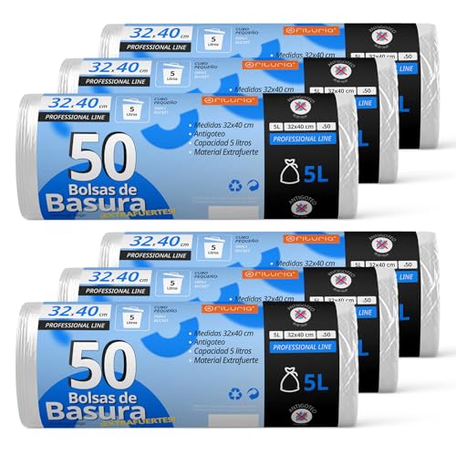 Sacs Poubelle, Sac Poubelle Résistant pour Poubelles de 5L, Antigoutte, Idéal pour Poubelle Salle de Bain, Bureau ou Cuisine, Convient à Tous Types de Déchets, 32x40 cm - Ofituria (50 sacs, 5L)
