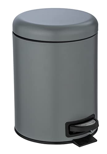 WENKO Poubelle Salle de Bain à pédale Leman, Petite Poubelle de qualité supérieure, capacité 5 litres, Poubelle avec Porte-Sac Poubelle intégré, en Acier Verni, 21 x 24 x 28 cm, Gris