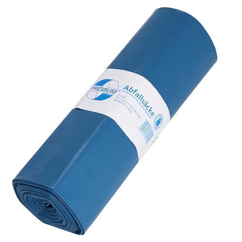DEISS PREMIUM Sac Poubelle 140L – Bleu, 700+200×1100 mm, Film 60 µm LDPE Recyclé, Ultra Résistant – Rouleau de 20 Sacs