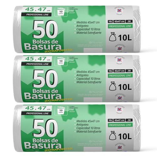 Sacs Poubelle, Sac Poubelle Résistant pour Poubelles de 10L, Antigoutte, Idéal pour Poubelle Salle de Bain, Bureau ou Cuisine, Convient à Tous Types de Déchets, 45x47 cm - Ofituria (150 sacs, 10L)