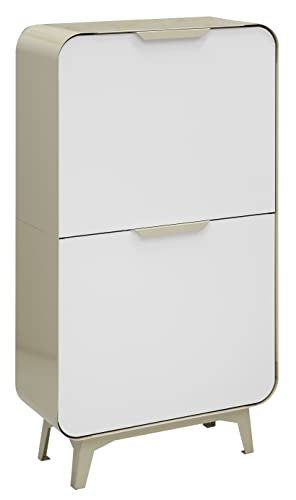 ARREGUI Round CR431-R Poubelle de Recyclage Cuisine 4 Bacs | 4 x 17 L (68 L) | Poubelle de Tri Sélectif Moderne 4 Rangements | Meuble Poubelle en Acier avec 4 Seaux | Sac Poubelle | crème et blanc mat
