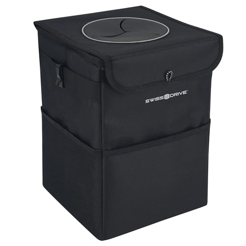 SUMEX Poubelle de voiture avec couvercle, sac poubelle de voiture à suspendre avec poches de rangement pliable et portable, grande capacité de 12 L, dimensions 20 x 20 x 30 cm