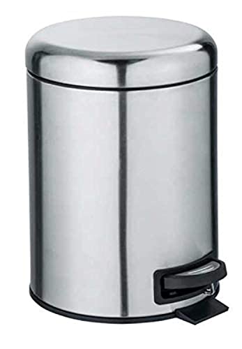 WENKO Poubelle cosmétique à pédale Leman Acier Inox mat, 5 litres, poubelle de salle de bain de qualité supérieure, petite poubelle avec porte-sac poubelle intégré, en acier inox satiné, 21 x 24 x 28 cm