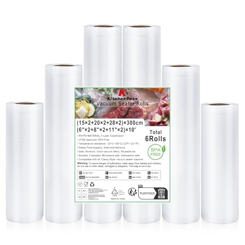 KitchenBoss Sac Sous Vide Alimentaire:6 Rouleaux 20/28 x 300cm Rouleau Sous Vide Alimentaire pour Machine Sous Vide, Sachet Sous Vide Alimentaire sans BPA, Film Sous Vide Alimentaire pour la Cuisson