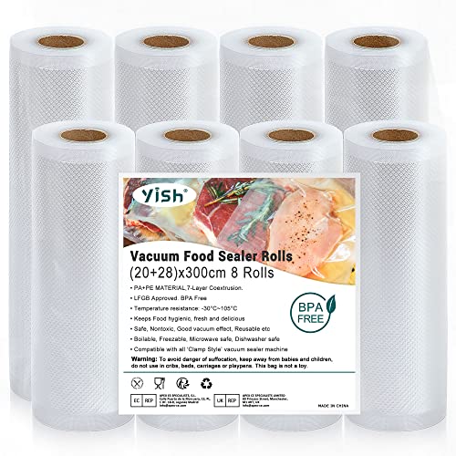 YISH Sac Sous Vide Alimentaire: Rouleau Sous Vide Alimentaire sans BPA, Sac Congélation Sous Vide pour la Cuisson, 8 Rouleaux 20/28x300CM, Film Sous Vide Alimentaire pour Machine Sous Vide