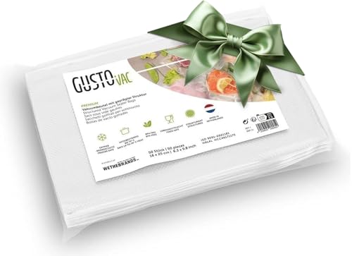 GustoVac Pack de 100 Sacs Sous Vide Alimentaire Gaufrés Fabriqué en Europe 25x35cm, Sac Sous Vide Alimentaire Film Sous Vide Alimentaire Sachet Sous Vide Alimentaire pour Machine Sous Vide Alimentaire