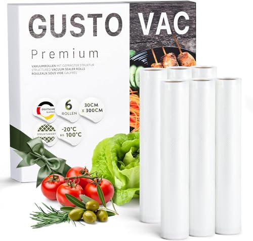 GustoVac 6 Rouleaux Sous-Vide Gaufrés fabriqués en Europe 30x300cm - Sans BPA - Sac Sous Vide Alimentaire Texturés Rouleau Sous Vide Alimentaire Film Sous Vide Alimentaire Sacs Sous Vide pour Machine