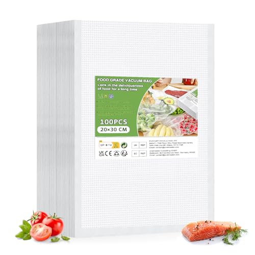 Vinabo Sacs Sous Vide Alimentaire 20 x 30 cm 100 Sachets pour Machine Sous Vide des Aliments et la Cuisson, Sac Sous Vide Gaufré