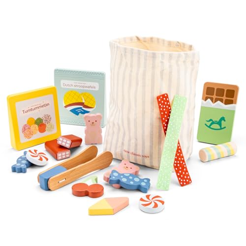 Woet® Set Bonbons Jouet en Bois pour Enfants - Nourriture d’Imitation avec Bonbons et Chocolat - avec Sac de Rangement - Jouet de Cuisine d’Imitation - À Partir de 3 Ans