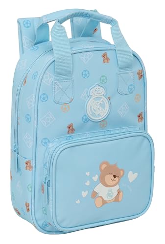 Real Madrid PREESCOAR BLEU - Sac à dos pour enfant, adaptable avec poignées, tissu recyclable, idéal pour les enfants de différents âges, confortable et polyvalent, qualité et résistance, 20 x 8 x 28