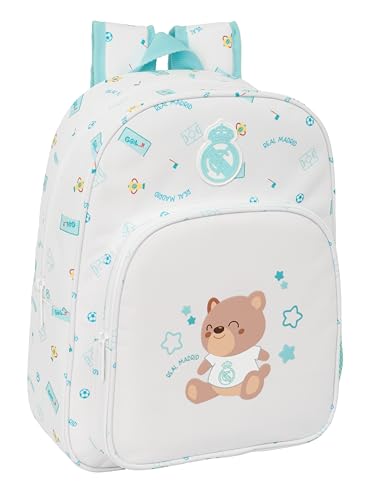 Real Madrid - Sac à dos scolaire pour enfant, adaptable au chariot, idéal pour les enfants d'âge scolaire, confortable et polyvalent, qualité et résistance, 32 x 12 x 38 cm