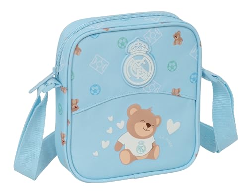 Real Madrid PREESCOAR BLEU - Petit sac à bandoulière pour enfant, idéal pour les enfants de 5 à 14 ans, confortable et polyvalent, qualité et résistance, 16 x 4 x 18 cm