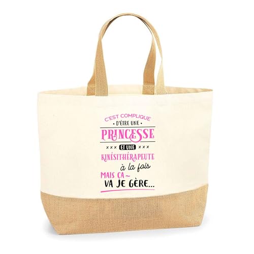 Otshirt Sac Jute Princesse et Kinesitherapeute | Cabas de Plage Courses Coton et Toile de Jute | Idée Cadeau Petite Amie Copine Collègue Maman Noël Anniversaire Fête des Mères