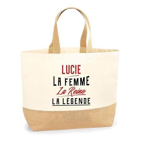 Otshirt Sac Jute Lucie la Femme la Reine la Légende | Cabas de Plage Courses Coton et Toile de Jute | Idée Cadeau Petite Amie Copine Maman Amour Humour Noël Anniversaire Fête des Mères