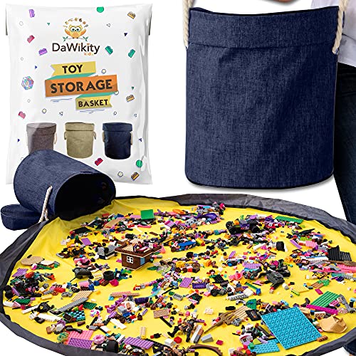 Panier de rangement pour jouets et tapis de jeu – Organisateur de rangement de jouets – Rangement facile – Sac de rangement pour blocs de jouets – Sac en toile pliable XL pour enfants – Tapis de jeu