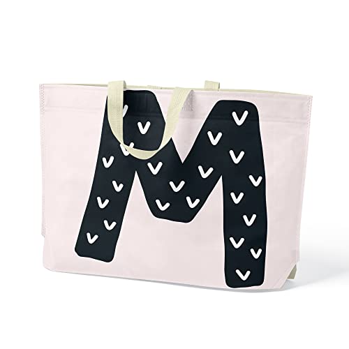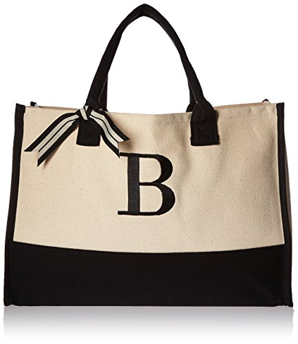 BeeGreen Sac en toile avec monogramme initiale avec poche intérieure zippée brodée pour maman, enseignante, amie, Naturel avec noir, X-Large, M