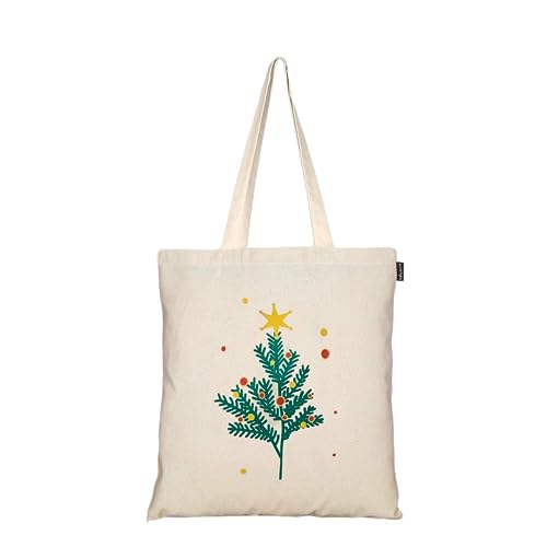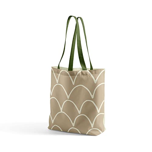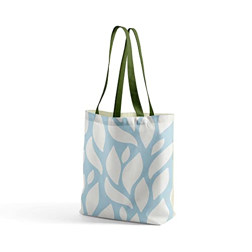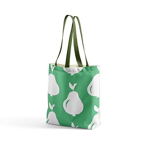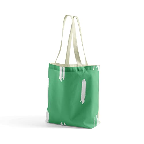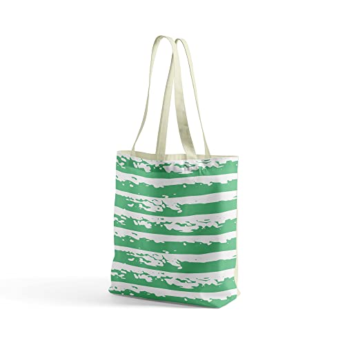 Bonamaison Sac Fourre-Tout İmprimé avec de Longues Poignées Vertes, Sac D'Épicerie, Sac À Provisions, Lavable en Machine, Pliable, Sac en Toile avec Longue Poignées, Taille: 34X40 Cm