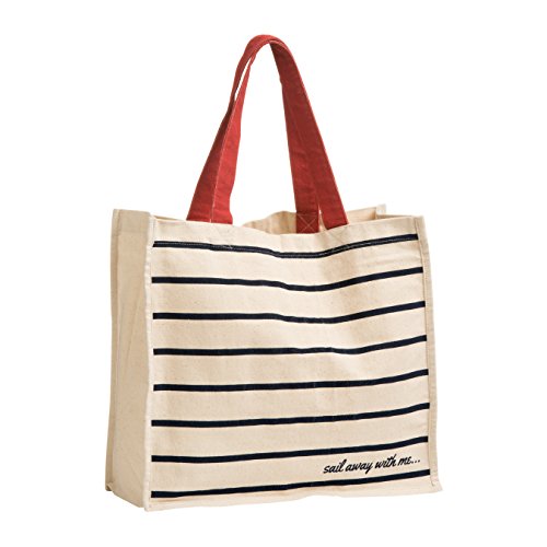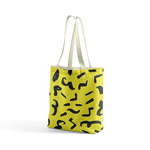 Bonamaison Sac Fourre-Tout İmprimé avec de Longues Poignées Noires, Sac D'Épicerie, Sac À Provisions, Pliable, Sac en Toile, Taille: 48x55 Cm