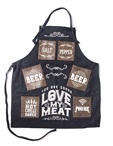 Boxer Gifts Canvas Apron Tablier de Cuisine Fantaisie Love My Meat pour Homme résistante Anniversaire, Noël ou fête des pères | Livré avec Sac Cadeau en Toile, Noir, Taille Unique
