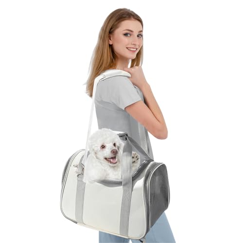 PETCUTE Sac de Transport pour Chat Chien, Caisse Transport Chat Respirant et Pliable avec Coussin Amovible,Bandoulière Réglable,Sac de Transport pour Animaux de Petite et Moyenne Taille Jusqu'à 10kg