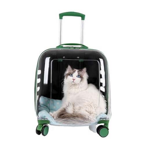Valise à roulettes pour Animaux de Compagnie Sac a Dos de Transport a roulettes pour Animal Domestique Transparent Valise Chien Charge Maximale 10kg (Color : Green Translucent)