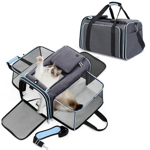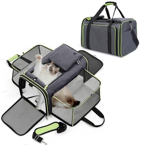 PETCUTE Sac de Transport pour Chat Chien, Sac de Voyage Respirant Extensible pour Chats,Pliable Caisse de Transport Chat avec Coussin Amovible et Bandoulière Réglable, Idéal Capacité Moins 10kg