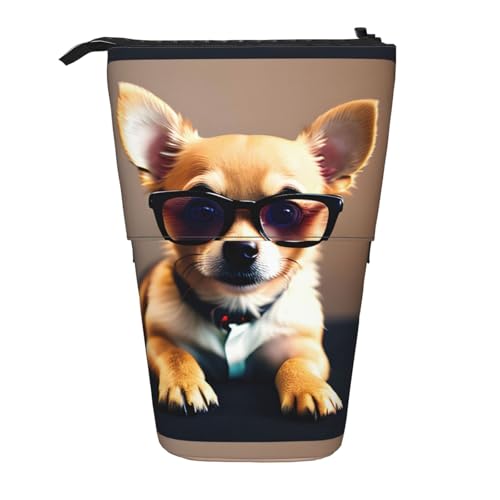 YHBLYKXP Trousse à crayons rétractable verticale avec lunettes de chien Chihuahua, sac de rangement, convient pour le bureau et le transport quotidien