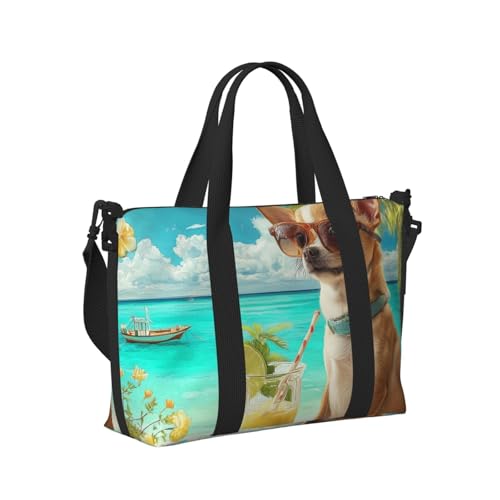 Mexpekil Grand sac de voyage imperméable pour le sport, la gym, le week-end, pour homme et femme, sac de transport pliable, Chihuahua Plage tropicale, Taille unique