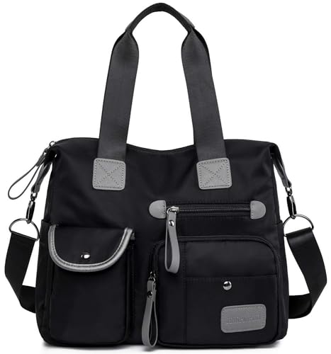 YouNuo Sac à main léger à poignée supérieure pour femme en nylon avec multiples poches et sac de travail résistant à l'eau, Noir (Floral Black), Medium