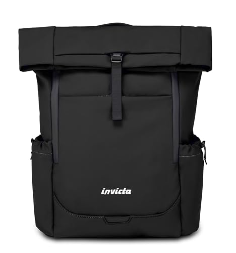Invicta Sac à dos travail Act Fold, noir, monocompartiment avec poche PC 15,6", poche bouteille et fond renforcé, sac à dos spacieux 32 L pour bureau et université, pour homme et femme