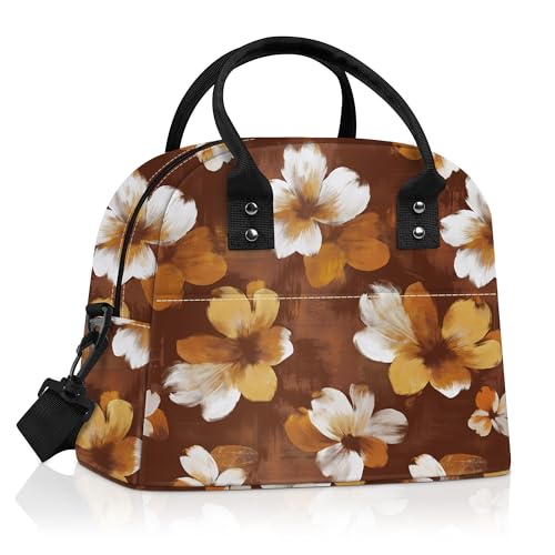 Clastyle Sac Isotherme Repas Femm Feuilles de Plantes Sac Gamelle Travail Portable mit Bandouliere pour Pique Nique,Fleur Marron