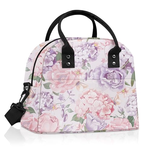 Clastyle Sac Isotherme Repas Femm Feuilles de Plantes Sac Gamelle Travail Portable mit Bandouliere pour Pique Nique,Papillon Pivoine