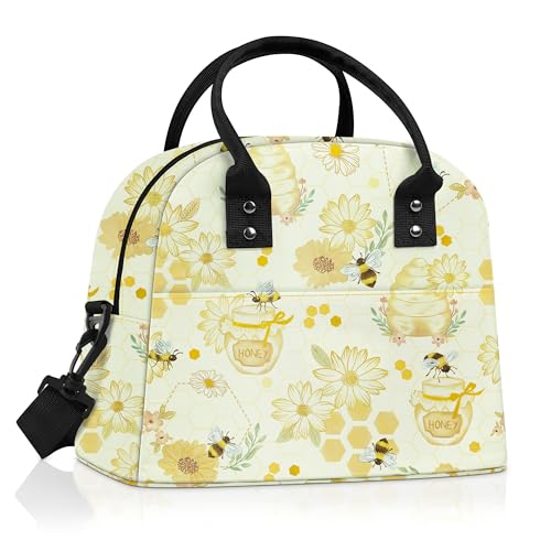 Clastyle Sac Isotherme Repas Femme Été Feuille Sac Gamelle Travail Portable mit Bandouliere pour Pique Nique,Abeille Marguerite