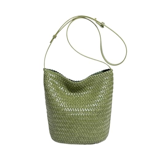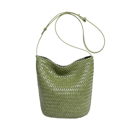 GYTTDERFL Sac En Cuir Tressé Sac à main for femme en cuir tissé à la main, sac for femme, grande capacité, fourre-tout à bandoulière, seau(Grass green)