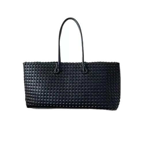GYTTDERFL Sac En Cuir Tressé Sac fourre-tout en cuir tissé à la main for femme, grande capacité, design à bandoulière, panier à légumes(Black,L)
